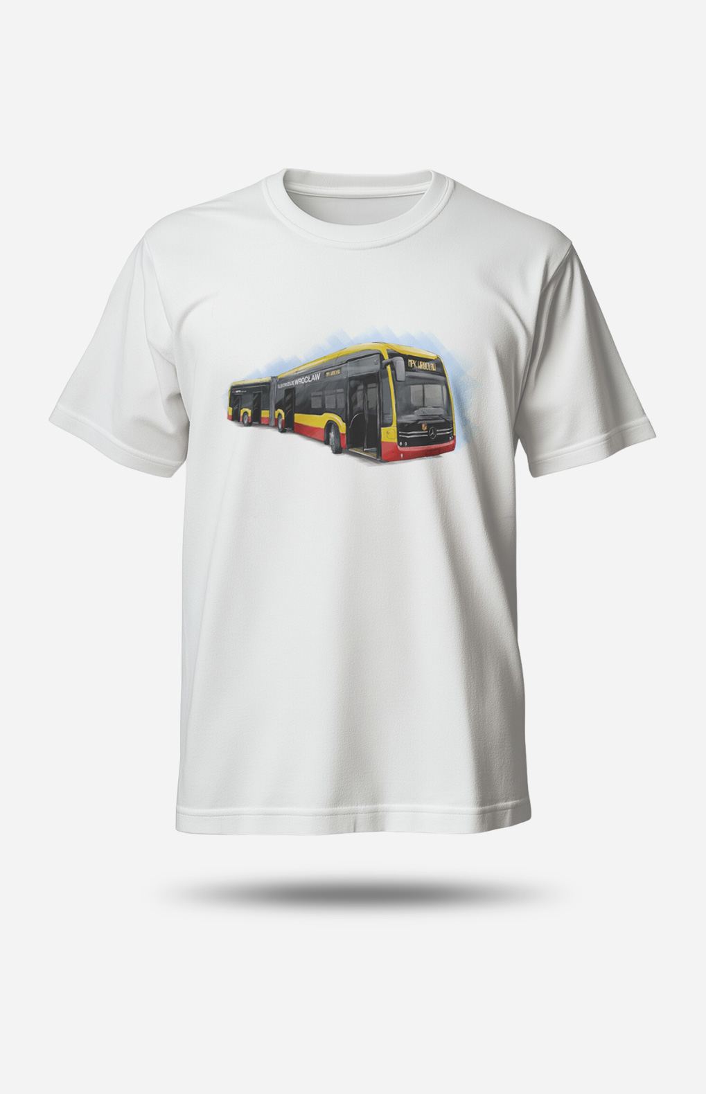 Nosząc tę koszulkę, pokazujesz, że jesteś na bieżąco z miejskimi trendami i kibicujesz rozwiązaniom, które zmieniają nasze miasta na lepsze. Cichy, elegancki, elektryczny autobus nie tylko wozi pasażerów ulicami, ale staje się symbolem zmian: czystsze powietrze, mniejszy hałas, bardziej zrównoważone podejście do codziennego przemieszczania się.